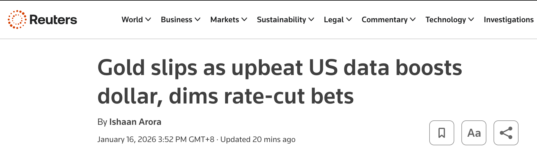 此外,报道称,美国2月交割黄金期货微跌0.3%,收于4608.90美元/盎司。Capital.com分析师Kyle Rodda表示,金价下跌是因为美国最新经济数据显示降息时机并不紧迫。